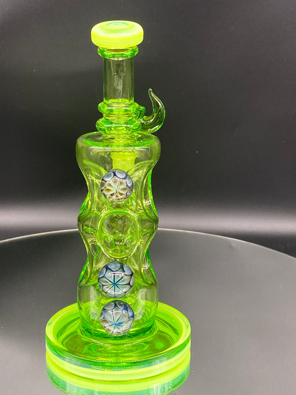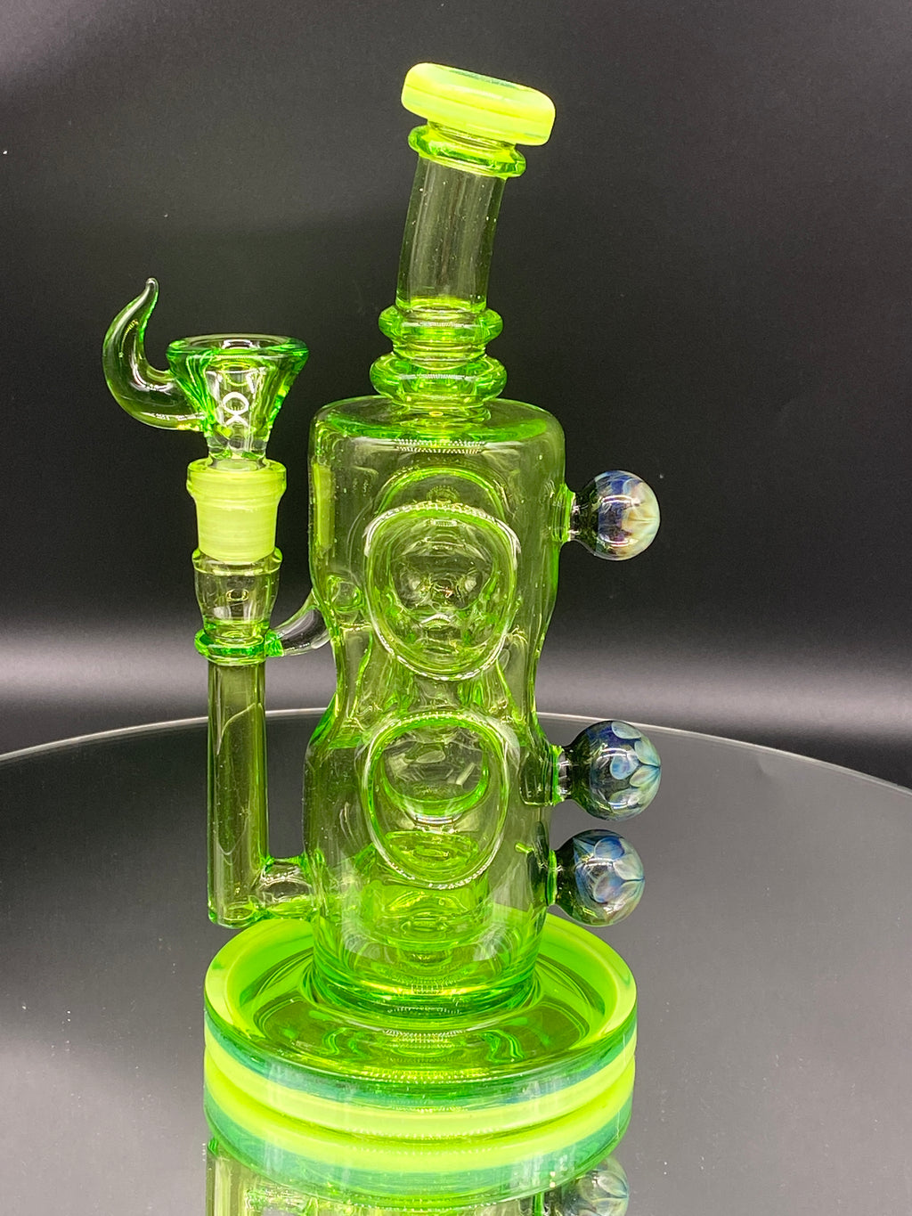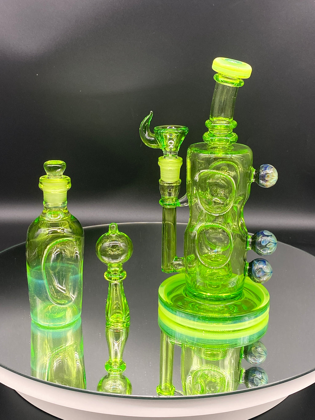 Davin Titland FULL COLOR Custom Rig with Marbles. Set is completely Green, including Bottle, Slide and Cap. This piece is covered with 3 large marbles that makes this piece completely unique.