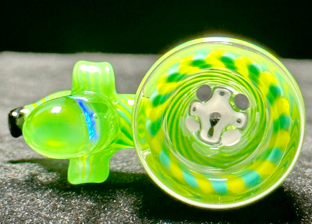 Dippy Glass 18mm Green & Yellow Swirl Nana Slide & Matching Dry Catch