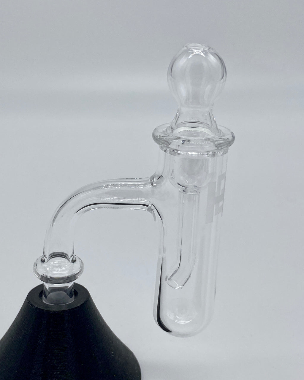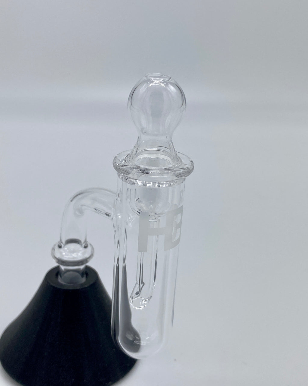 This Cold Start Cap Combo or Long Barrel Cold Start With Cap by Joel Halen is a unique design they invented to allow cold start dabbers the additional space needed to perfect the hit. The longer barrel keeps the concentrate from sucking through while heating and the cap is designed to push the extract back down. The opening is slightly smaller than standard.