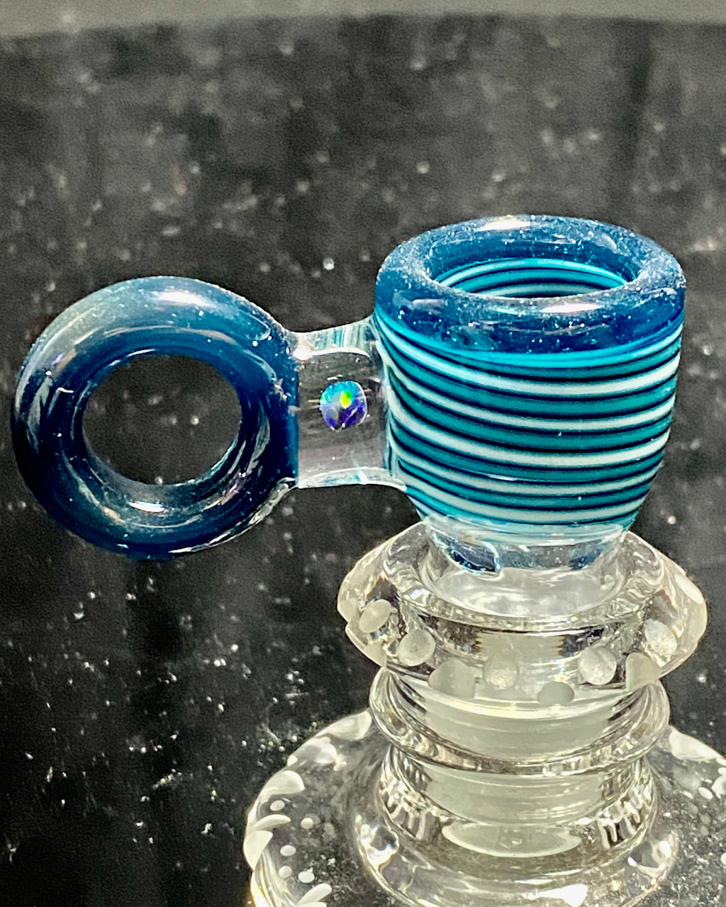Mary Blows Glass Worked Blue Ring Handle w/ Opal 18mm Slide.