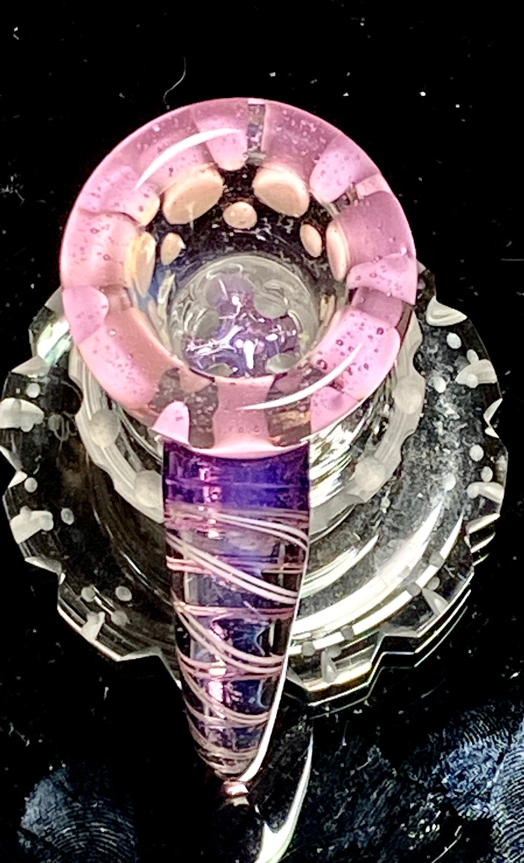 Mary Blows Glass Worked Yellow/Purple Horned Handle 18mm Slide.