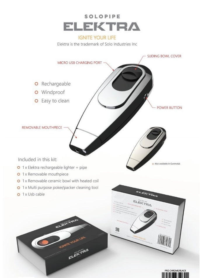 - 1 x Elektra rechargeable lighter + pipe (Gunmetal)