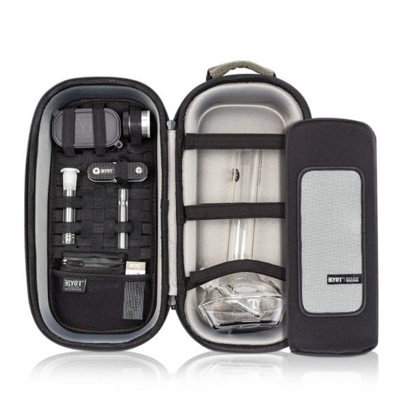 The new and improved RYOT Axe Pack GOO.O is the goo-to hard case to confidently pack and protect your large glass, gear, and other goodies. Outfitted with lockable zipper pulls, thick wall padding, a silicone mat divider, X-strap technology, and SmellSafe Carbon Series capabilities, the Axe Pack traps unwanted odors for discrete storage and transport. Pairs well with a Kannastör Multi Chamber Grinder, a RYOT Brandy water pipe, and a Super Dugout.