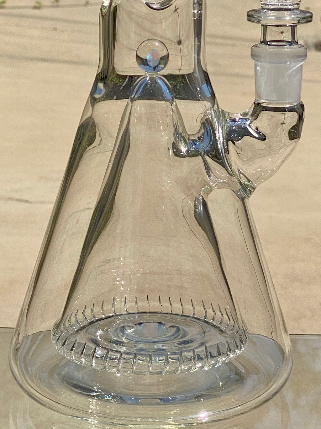 The Fusion beaker is one of the latest addition to our Fluid Dynamics Series. This piece features the iconic Collins Perk Design. The Collins perk resembles a beaker within a beaker. Our Fusion beaker has the best function out of any Collins beaker on the market! The bubble passes through every slit when in use, providing an incredibly smooth hit!
