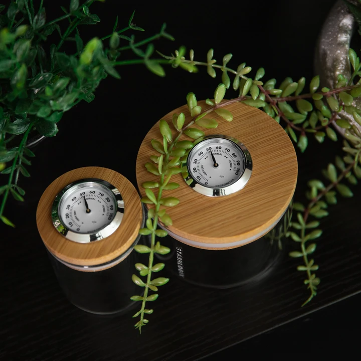 Glass Jar & Bamboo Lid with Built-in Analogue Humidity Sensor
