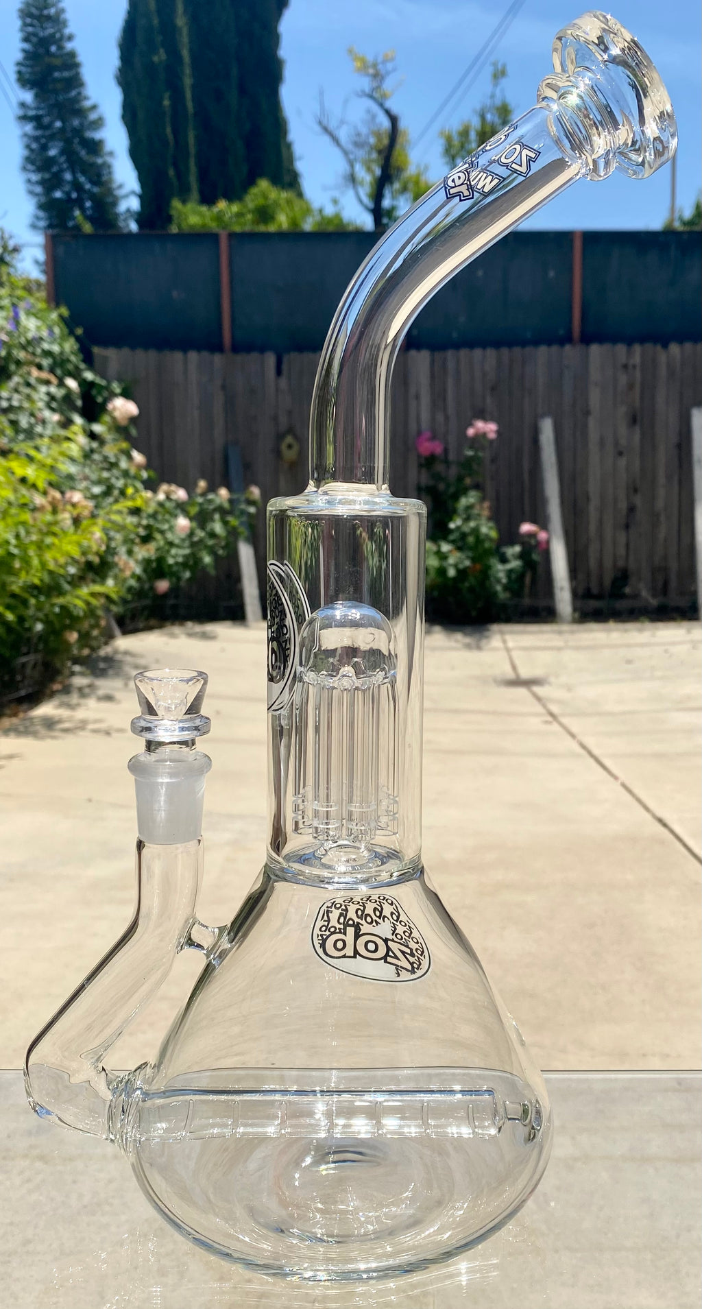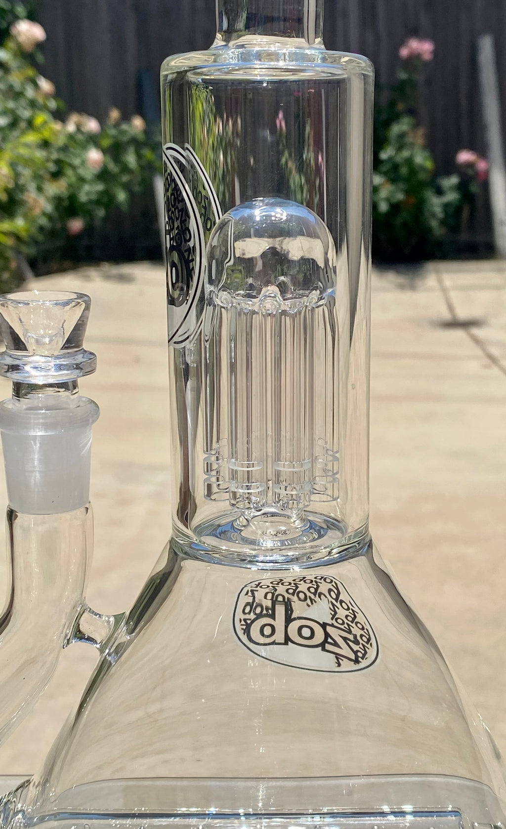 Zob 16 inch Stemless Inline Diffused Beaker Wubbler with 8 Arm Tree Percolator Black & White Label