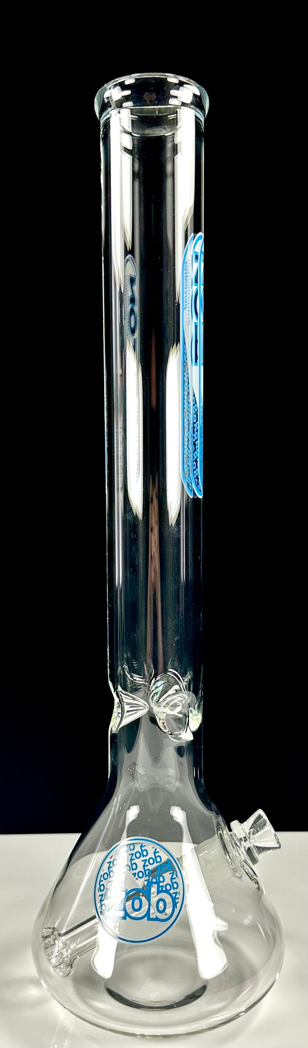 Zob Beaker with Fixed Flat Disc Diffuser Zob Glass makes this bad ass beaker. It's approx. 18 inches tall. Zob is all about style and function, and this piece shows that. It features a fixed down stem with flat disc diffuser on the end of it. This gives excellent diffusion, and eliminates the problem of broken down stems. The beaker bottom allows for huge milky rips. The three prong ice pinch lets you pack the tube full of ice for super chilled hits. This beaker is a beauty! Zob standard 18mm. ground glass slide comes with the pipe. Zob goes to great lengths to make sure each piece is one of a kind, so the label will most likely be different than the one pictured. - Perc: Flat Disc Diffuser - Features a Three Prong Ice Pinch - Height: 18.00 inches - Base Width: 5.50 inches - Tube Diameter: 50.00mm. - Down Stem: Fixed Down Stem - Glass Thickness: 5.00mm. - Slide: 18.00mm. Ground Glass Slide - Made in California